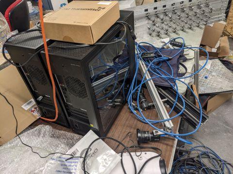 This custom surface metrology tool was designed and built to measure high precision surface topography of large surfaces. It includes tripod supports, projectors, computers, cameras and other accessories. Software not included.